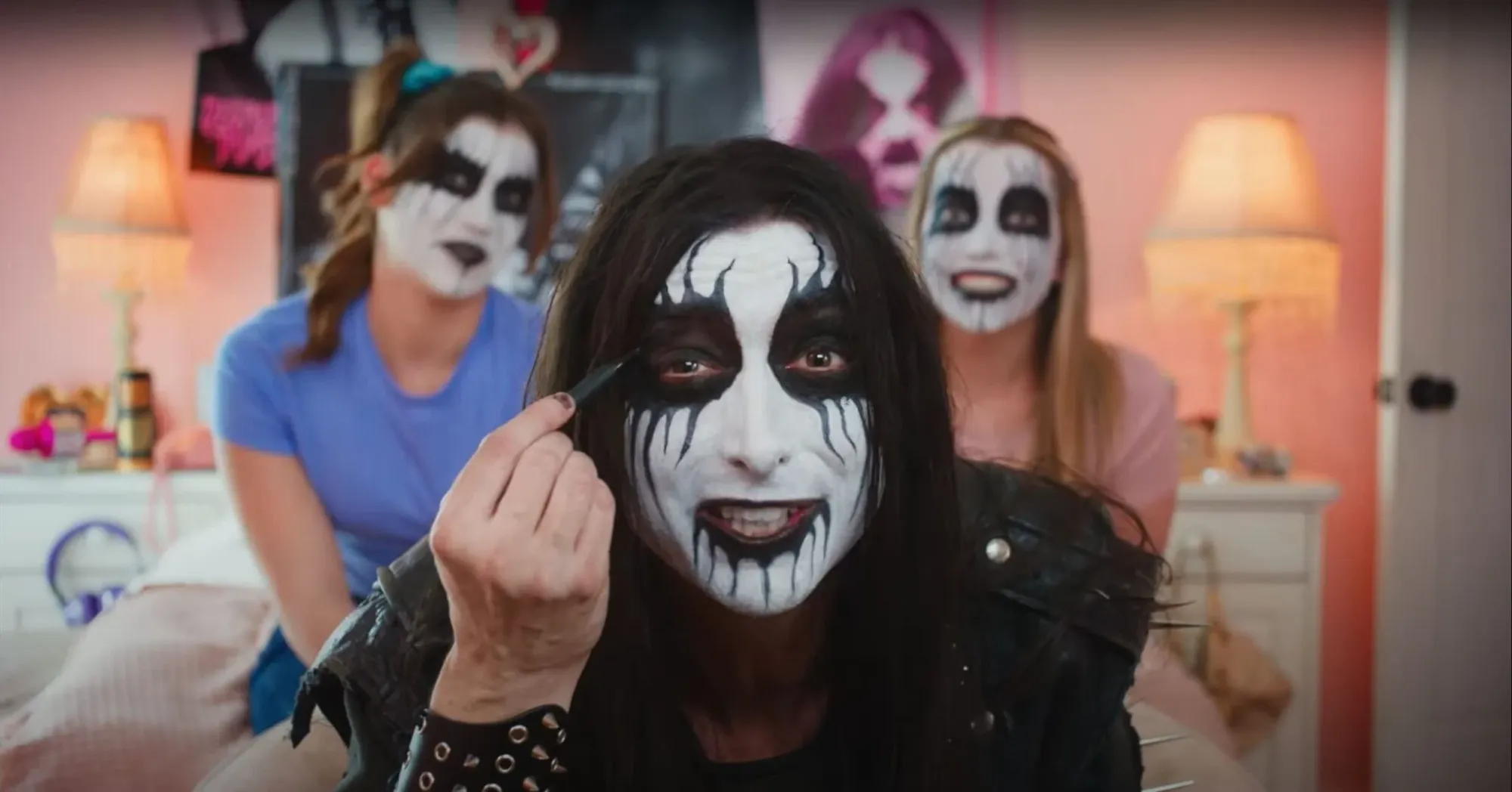 La escena parece sacada de un comercial noventoso: dos chicas en una habitación rosada hojean una revista para adolescentes, pero el galán de portada no es un ídolo pop… parece el vocalista de una banda de death metal noruega.